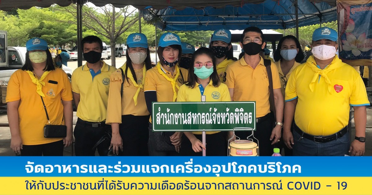 วันที่ 1 มิถุนายน 2563 นางสาวไพรินทร์ สุขเล็ก สหกรณ์จังหวัดพิจิตร มอบหมายให้นายสุรพันธ์ เสาวภาคสุข นักวิชาการสหกรณ์ชำนาญการพิเศษ นายกฤษฎ์ จารุชาต ผู้อำนวยการกลุ่มส่งเสริมสหกรณ์ 1 และบุคลากรสำนักงานสหกรณ์จังหวัดพิจิตร โดยมีพระครูศรีรัตนวิเชียร เจ้าอาวาสวัดท่าบัวทอง เจ้าคณะตำบลวังจิก พร้อมด้วยจิตอาสาจากทุกภาคส่วน เข้าร่วมการแจกจ่ายอาหารและเครื่องอุปโภคบริโภค ให้แก่ประชาชนที่ได้รับความเดือดร้อนจากสถานการณ์การแพร่ระบาด ของเชื้อไวรัสโคโรนา 2019 (COVID – 19) ณ วัดท่าบัวทอง อำเภอโพธิ์ประทับช้าง จังหวัดพิจิตร โดยมีนายสิริรัฐ ชุมอุปการ ผู้ว่าราชการจังหวัดพิจิตร เป็นประธานในกิจกรรมในครั้งนี้ สำหรับการแจกจ่ายอาหารและเครื่องอุปโภคบริโภคให้กับประชาชน จัดขึ้นทั้งหมด 5 วัน โดยเริ่มตั้งแต่วันที่ 28 พฤษภาคม 2563 ถึงวันที่ 1 มิถุนายน 2563 โดยแต่ละวันจะสลับหมุนเวียนเมนูตามความเหมาะสม