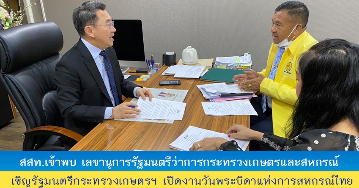 ดร.ปัณฐวิญช์ มุ่งสมัครศรีกุล ผู้อำนวยการสันนิบาตสหกรณ์ นำทีมเข้าพบ ท่านธนา ชีรวินิจ เลขานุการรัฐมนตรีว่าการกระทรวงเกษตรและสหกรณ์ เพื่อติดตามงานด้านต่างๆ และเรียนเชิญท่าน รัฐมนตรีว่าการกระทรวงเกษตรและสหกรณ์ นายเฉลิมชัย ศรีอ่อน มาเป็นประธานเปิด งานวันพระบิดาแห่งการสหกรณ์ไทย สัมมนาร่วมคิด ร่วมทำ และร่วมหาคำตอบ