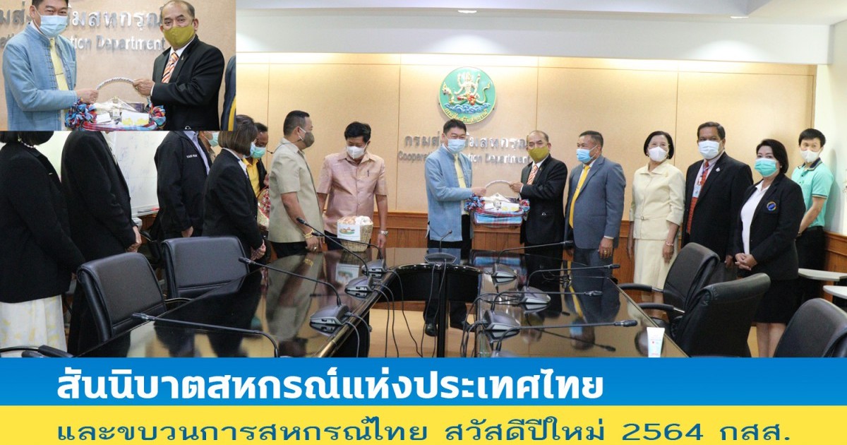 วันที่ 4 มกราคม 2564  นายปรเมศวร์ อินทรชุมนุม  ประธานฯ คณะกรรมการฯ และฝ่ายจัดการ สันนิบาตสหกรณ์แห่งประเทศไทย สสท. พร้อมด้วย ผศ.อาภากร มินวงษ์ ประธานฯ และคณะกรรมการฯ ผู้บริหาร ชุมนุมสหกรณ์เครดิตยูเนี่ยนแห่งประเทศไทย จำกัด นางสุนารี มีทรัพย์ ประธานฯ ผู้จัดการฯ ชุมนุมร้านสหกรณ์แห่งประเทศไทย จำกัด นายจันทร์ หวนสันเทียะ ประธานฯ คณะผู้บริหาร ชุมนุมสหกรณ์บริการเดินรถแห่งประเทศไทย จำกัด และ นายวิฑูรย์ แนวพานิช ประธานฯ สหกรณ์แท็กซี่สยาม จำกัด  เข้ามอบกระเช้าอวยพรและขอพรในวาระดิถีขึ้นปีใหม่ 2564 ท่านวิศิษฐ์ ศรีสุวรรณ์ รองอธิบดีกรมส่งเสริมสหกรณ์ ณ ห้องประชุมชั้น 6 กรมส่งเสริมสหกรณ์ เทเวศร์ กรุงเทพฯ