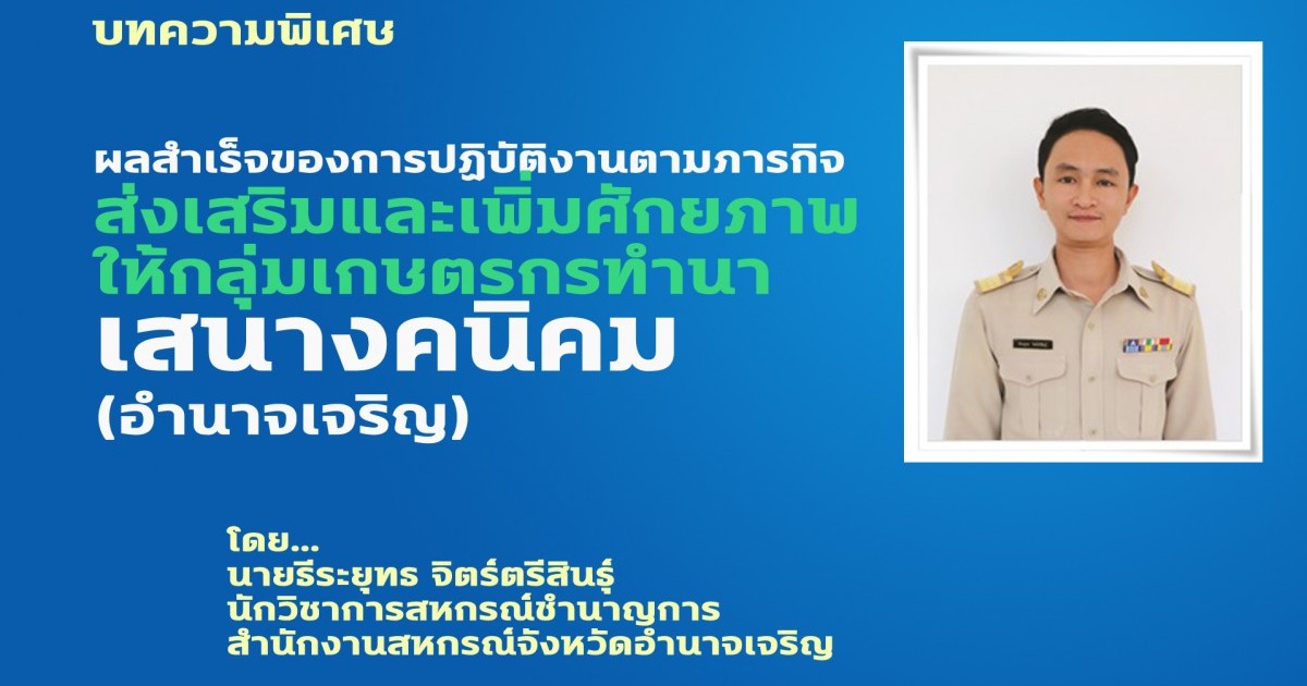 ผลสำเร็จของการปฏิบัติงาน ตามภารกิจส่งเสริมและเพิ่มศักยภาพให้กลุ่มเกษตรกรทำนาเสนางคนิคม (อำนาจเจริญ)
