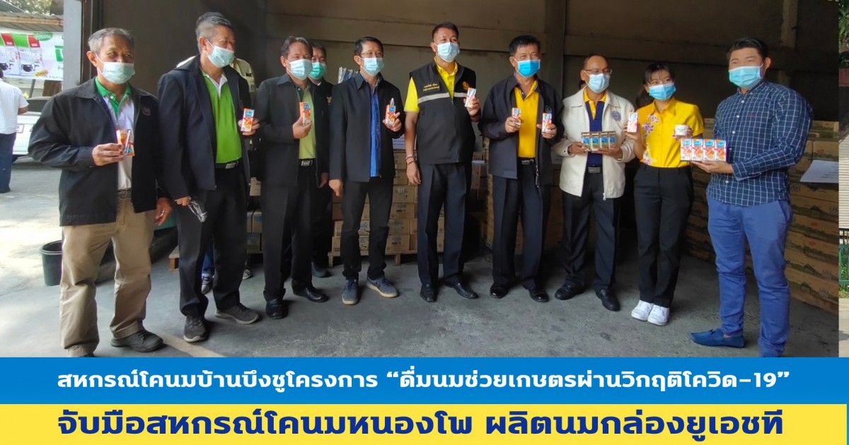 สหกรณ์โคนมบ้านบึงชูโครงการ “ดื่มนมช่วยเกษตรผ่านวิกฤติโควิด-19” จับมือสหกรณ์โคนมหนองโพ ผลิตนมกล่องยูเอชที