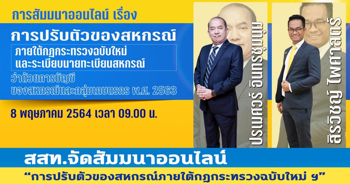 สสท.จัดสัมมนาออนไลน์ “การปรับตัวของสหกรณ์ภายใต้กฎกระทรวงฉบับใหม่ฯ”