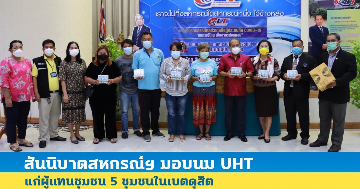 นายปรเมศวร์ อินทรชุมนุม ประธานฯ สันนิบาตสหกรณ์แห่งประเทศไทย (สสท.) พร้อมด้วยนางสุนารี มีทรัพย์ กรรมการ สสท. และ ดร.ปัณฐวิชญ์ มุ่งสมัครศรีกุล ผู้อำนวยการ สสท. มอบนม UHT จากสหกรณ์โคนมวาริชภูมิ จำกัด ให้กับประธาน/กรรมการ หรือผู้แทน จากชุมชนในเขตดุสิต จำนวน 5 ชุมชนที่ใกล้เคียง ได้แก่ ชุมชนตรอกต้นโพธิ์ ชุมชนวัดน้อยนพคุณ ชุมชนนครไชยศรี ชุมชนวัดสวัสดิ์ดีศรีมาราม(วัดแค) และชุมชนซอยโซดา รวมทั้งสิ้นกว่าหนึ่งพันครัวเรือน เพื่อบรรเทาความเดือดร้อนของประชาชนละแวกใกล้เคียง ในวิกฤติการแพร่ระบาดของโรคCOVID-19 ตามหลักการสหกรณ์ ข้อ 7 การเอื้ออาทรต่อชุมชุน ณ ห้องประชุมศูนย์การประชุมรัชนีแจ่มจรัส สันนิบาตสหกรณ์แห่งประเทศไทย