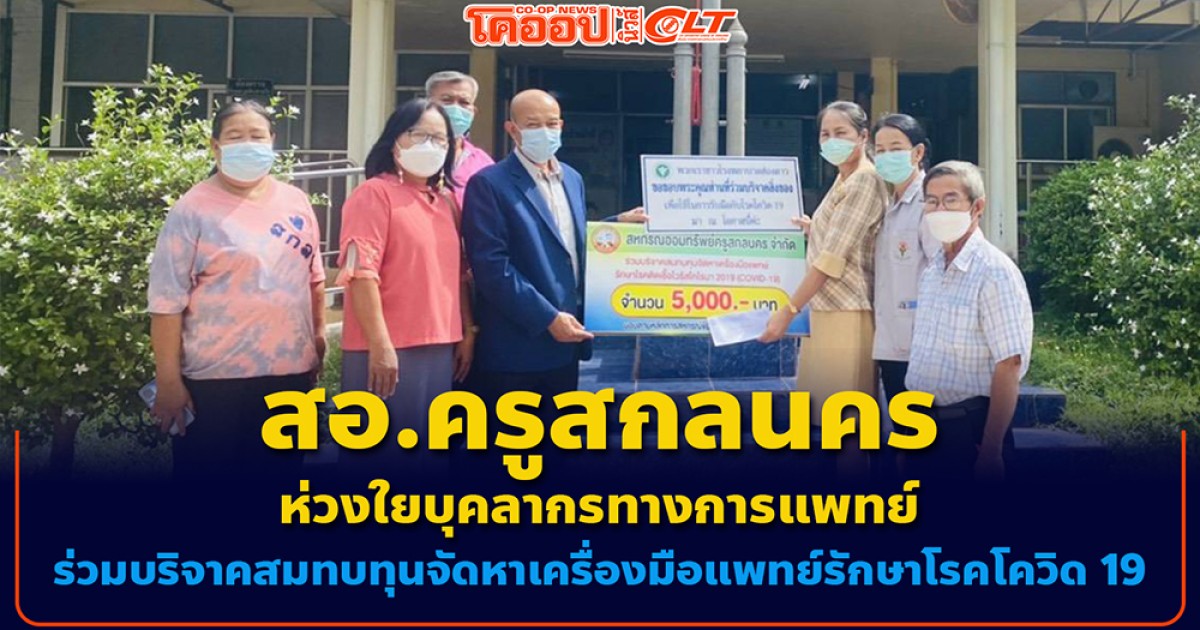 ​สอ.ครูสกลนคร ห่วงใยบุคลากรทางการแพทย์ ร่วมบริจาคสมทบทุนจัดหาเครื่องมือแพทย์รักษาโรคโควิด 19