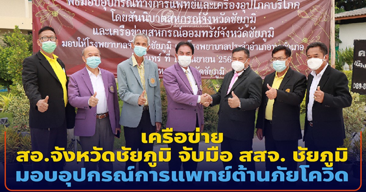 เครือข่ายสหกรณ์ออมทรัพย์จังหวัดชัยภูมิ จับมือสันนิบาตสหกรณ์จังหวัดชัยภูมิ มอบอุปกรณ์การแพทย์ต้านภัยโควิด