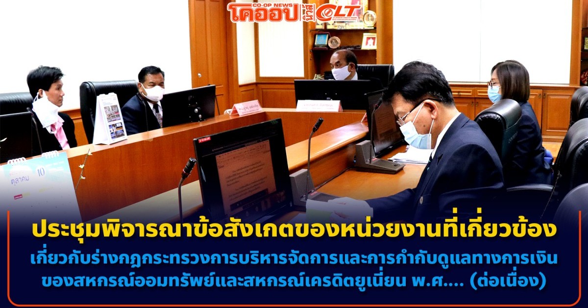 (วันที่ 26 ตุลาคม 2564) สันนิบาตสหกรณ์แห่งประเทศไทย นำโดย นายปรเมศวร์ อินทรชุมนุม ประธานกรรมการดำเนินการ พร้อมด้วย นายปัณฐวิชญ์ มุ่งสมัครศรีกุล ผู้อำนวยการ และนายธีรุตม์ ชูช่วย หัวหน้าฝ่ายทรัพยากรบุคคลและนิติกร เข้าร่วมประชุมเพื่อพิจารณาประเด็นข้อสังเกตของหน่วยงานที่เกี่ยวข้องเกี่ยวกับร่างกฎกระทรวงการบริหารจัดการและการกำกับดูแลทางการเงินของสหกรณ์ออมทรัพย์และสหกรณ์เครดิตยูเนี่ยน พ.ศ.... ต่อคณะกรรมการกฤษฎีกา (ต่อเนื่องจากคราวประชุมที่ผ่านมา) โดยมีชุมนุมสหกรณ์เครดิตยูเนี่ยนแห่งประเทศไทย จำกัด นำโดย ผศ.อาภากร มินวงษ์ ประธานกรรมการดำเนินการ พร้อมด้วย นายดาบชัย ใจสู้ศึก ผู้จัดการใหญ่ และคณะเจ้าหน้าที่ จากชุมนุมสหกรณ์เครดิตยูเนี่ยนแห่งประเทศไทย จำกัด ร่วมประชุม ผ่านสื่ออิเล็กทรอนิกส์ Microsoft Teams ณ ห้องประชุมรัชนี 6 ศูนย์การประชุมรัชนีแจ่มจรัส สันนิบาตสหกรณ์แห่งประเทศไทย เขตดุสิต กรุงเทพมหานคร