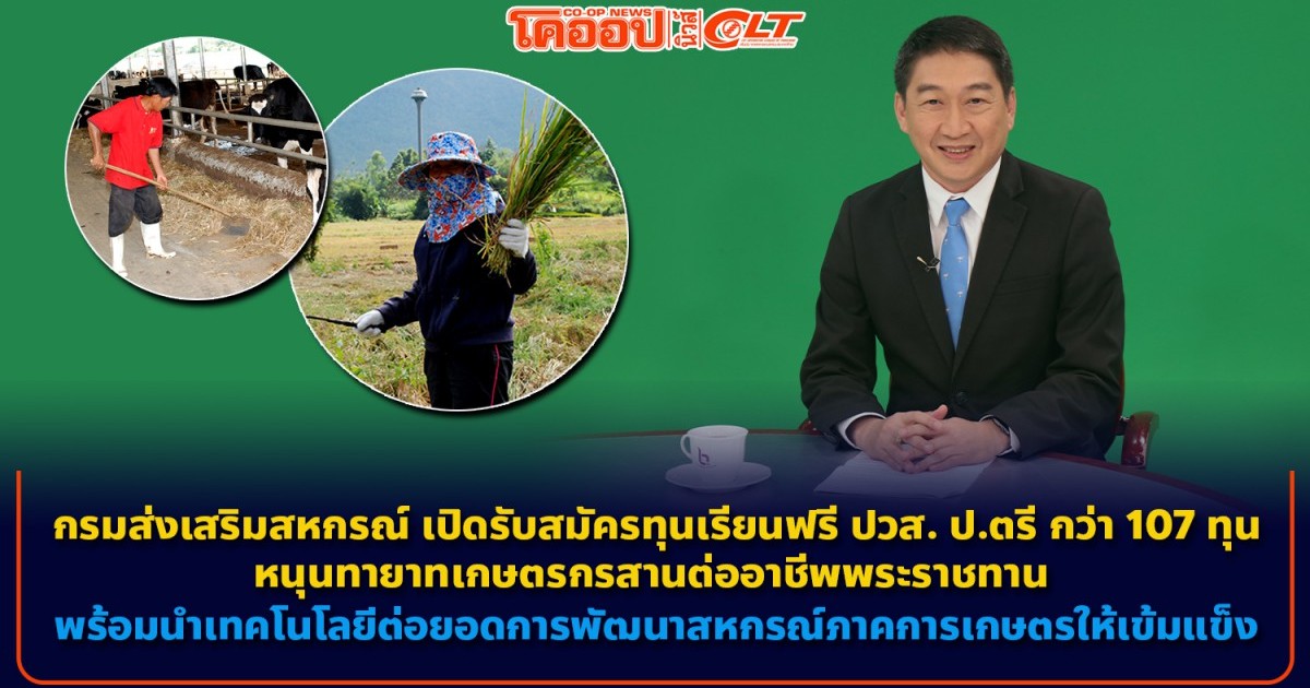 กรมส่งเสริมสหกรณ์ เปิดรับสมัครทุนเรียนฟรี ปวส. ป.ตรี กว่า 107 ทุน