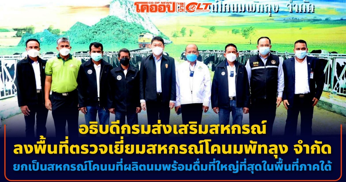 นายวิศิษฐ์ ศรีสุวรรณ์ อธิบดีกรมส่งเสริมสหกรณ์ ลงพื้นที่ตรวจเยี่ยมการดำเนินงานของสหกรณ์โคนมพัทลุง จำกัด พร้อมเยี่ยมชมโรงงานแปรรูปนมยูเอชที โดยมี นายวิสุทธิ์ ธรรมเพชร ประธานกรรมการสหกรณ์โคนมพัทลุง จำกัด นายประสิทธิ์ เพ็งช่วย ผู้จัดการสหกรณ์โคนมพัทลุง จำกัด พร้อมด้วย พนักงานและเจ้าหน้าที่ให้การต้อนรับ ณ สหกรณ์ โคนมพัทลุง จำกัด ตำบลนาท่อม อำเภอเมือง จังหวัดพัทลุง