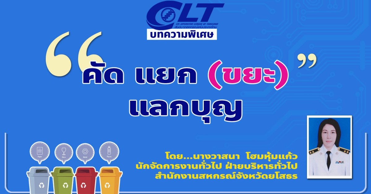 สำนักงานสหกรณ์จังหวัดยโสธร ได้เล็งเห็นถึงความสำคัญของปัญหาที่เกิดจากการสะสมของขยะจำนวนมาก และประโยชน์ของการจัดการคัดแยกขยะ เพื่อลดผลกระทบต่อสิ่งแวดล้อม จึงได้ดำเนินการจัดทำถังคัดแยกขยะไว้สำหรับคัดแยกขยะในสำนักงานสหกรณ์จังหวัดยโสธร มีการคัดแยกขยะเป็นประจำในแต่ละเดือน แล้วรวบรวมขยะรีไซเคิลนำมาบริจาค เพื่อจำหน่ายตามโครงการ “คัด แยก (ขยะ) แลกบุญ” เดือนละ 1 ครั้ง ในทุกวันที่ 5 ของทุกเดือน โครงการดังกล่าวเป็นโครงการที่จังหวัดยโสธรจัดทำขึ้นมีวัตถุประสงค์เพื่อ 1) รักษามาตรฐานและต่อยอด “ จังหวัดสะอาด” อย่างยั่งยืน 2) ขับเคลื่อนการจัดการขยะมูลฝอยแบบบูรณาการร่วมกันแบบ “กรมยโสธร” 3) รณรงค์สร้างจิตสำนึกในการจัดการขยะด้วยตนเอง ภายใน้แนวคิด “ใครก่อขยะ คนนั้นมีหน้าที่รับผิดชอบกำจัดขยะ” 4) เพื่อเป็นกิจกรรมทำความดีเพื่อเป็นการเฉลิมฉลองในโอกาสการจัดงาน “สถาปนาจังหวัดยโสธร ครบ 50 ปี” โดยนำรายได้จากการจำหน่ายขยะรีไซเคิลมอบให้องค์กรการกุศลในการช่วยเหลือสังคม ผู้ด้อยโอกาส และผู้ประสบภัย  สำนักงานสหกรณ์จังหวัดยโสธรเป็นหน่วยงานราชการ จึงหวังว่าเพียงเป็นต้นแบบที่ดีให้แก่เด็กและเยาวชนในการจัดการขยะด้วยตนเอง