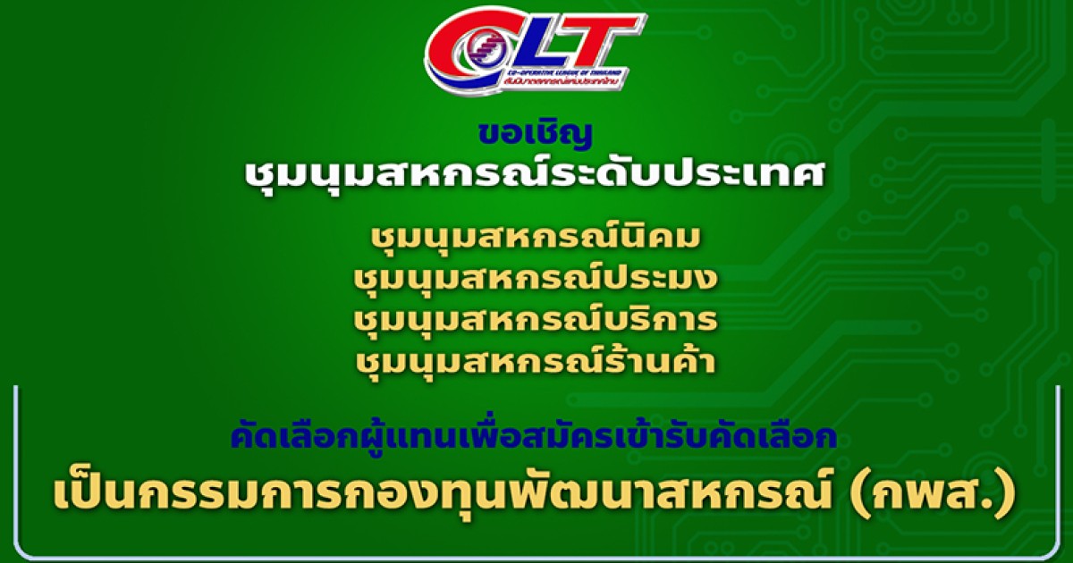 การรับสมัครเข้ารับการคัดเลือกเป็นกรรมการบริหารกองทุนพัฒนาสหกรณ์ (กพส.) ของประธานกรรมการสหกรณ์/ชุมนุมสหกรณ์ ประเภทนิคม ประมง บริการ และร้านค้า