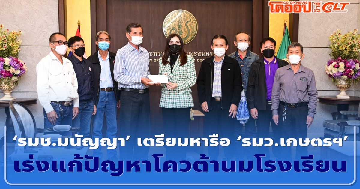 “เจตนารมณ์ของโครงการนมโรงเรียน คือ ต้องการให้นักเรียนของไทยได้ดื่มนมที่มีคุณภาพ และขณะเดียวกันก็ทำให้เกษตรกรผู้เลี้ยงโคนมของไทยมีความยั่งยืนในการประกอบอาชีพ ที่ผ่านมาจึงได้มีการกำหนดรูปแบบโครงการว่า นมที่เข้าโครงการนมโรงเรียน ส่วนหนึ่งจะต้องมาจากเกษตรกร แต่จะเห็นว่าปัจจุบัน อ.ส.ค. ซึ่งเป็นรัฐวิสาหกิจมีหน้าที่รับซื้อ รับผิดชอบนมจากเกษตรกร ซึ่งมีสมาชิกประมาณ 4,500 ครัวเรือน ปริมาณน้ำนมดิบ 700 ตันต่อวัน แต่ได้สิทธิ์โควต้านมโรงเรียนเพียง 96 ตันต่อวัน ที่เหลือเป็นภาคส่วนอื่นที่ได้รับโควต้าไป แต่เมื่อเกิดปัญหาความเดือดร้อนของเกษตรกร ทั้งราคาน้ำนม คุณภาพน้ำนม นมโรงเรียนบูด นมโรงเรียนเสีย อ.ส.ค. เป็นหน่วยงานแรกที่ถูกร้องเรียน ในขณะที่ อ.ส.ค. มีส่วนผลิตเพียงร้อยละ 9 เท่านั้น และสัดส่วนนมโรงเรียน 96 ตันต่อวัน ไม่สามารถที่จะดูแลสมาชิกสหกรณ์โคนมได้อย่างครอบคลุม ทำให้เกษตรกรเดือดร้อน รวมถึง อ.ส.ค. ยังต้องแบกภาระสต็อกน้ำนม UHT กว่า 30,000 ตัน เนื่องจากประสบปัญหาสถานการณ์การแพร่ระบาดของเชื้อไวรัสโคโรนา 2019 (COVID-19) ดังนั้น จะเสนอ รมว.เกษตรฯ ให้นำเรื่องนี้หารือในส่วนของกระทรวงเกษตรและสหกรณ์โดยเร่งด่วน จะไม่รอให้เกษตรกรต้องขนนมมาทิ้งเหมือนในอดีตที่ผ่านมา” รมช.มนัญญา กล่าว