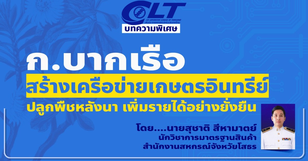 บทความ เรื่อง "ก.บากเรือ สร้างเครือข่ายเกษตรอินทรีย์ ปลูกพืชหลังนา เพิ่มรายได้อย่างยั่งยืน"