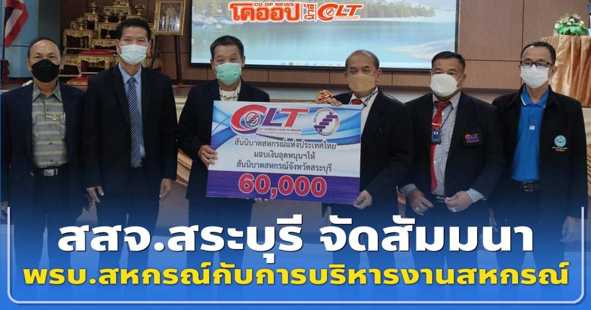 พร้อมกันนี้นายปรเมศวร์ อินทรชุมนุม  และนายปัญฐวิชญ์ มุ่งสมัครศรีกุล ผู้อำนวยการ สสท. นางเบญจมาส พรพิทักษ์พันธุ์ รองผู้อำนวยการ สสท. เป็นผู้แทนสันนิบาตสหกรณ์ฯ มอบเงินอุดหนุนการจัดอบรมแก่สันนิบาตสหกรณ์จังหวัดสระบุรี จำนวน 60,000 บาท ณ ห้องประชุมสหกรณ์ออมทรัพย์ครูสระบุรี จำกัด อ.เมือง จ.สระบุรี