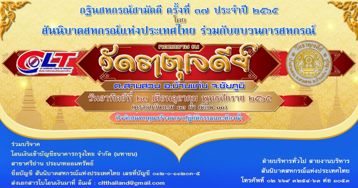 | รายนามผู้ร่วมทำบุญ กฐินสหกรณ์สามัคคี ครั้งที่ 37 ประจำปี 2565 | ||