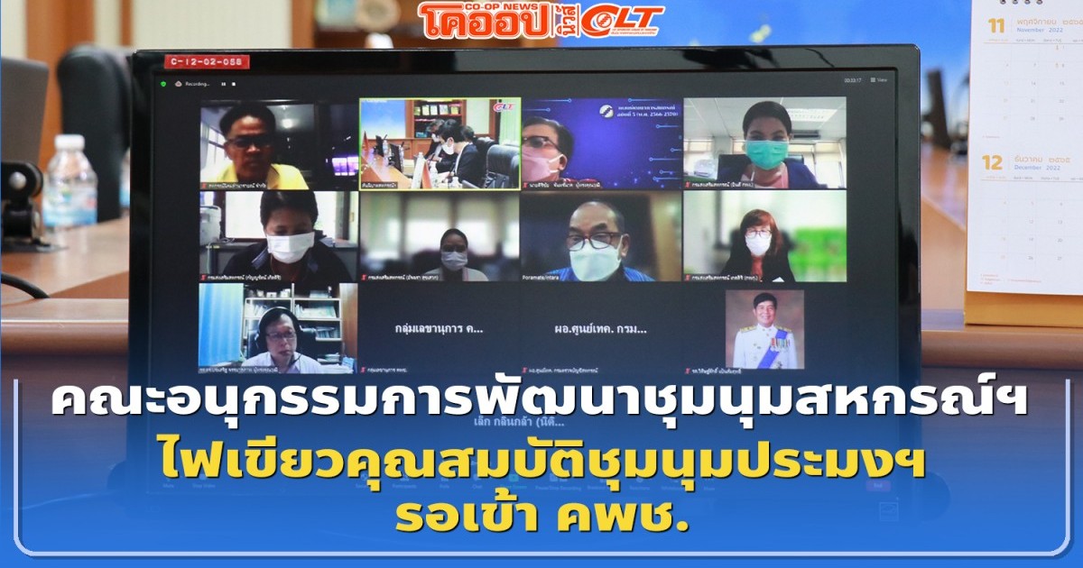 โดยในการประชุมครั้งนี้ มีผู้เข้าร่วมประชุมผ่านระบบ Zoom Meeting ประกอบด้วย นายสมพิศ ทามี ประธานฯ ชุมนุมสหกรณ์นิคมแห่งประเทศไทย จำกัด รศ.วิศิษฐ์ศักดิ์ แป้นสัมฤทธิ์ ประธานฯ ชุมนุมร้านสหกรณ์แห่งประเทศไทย จำกัด นายศิริชัย จันทร์นาค ผู้ทรงคุณวุฒิ รศ.ดร.ประเสริฐ จรรยาสุภาพ ผู้ทรงคุณวุฒิ นางสาวกัญญรัตน์ เกิดศิริ กรมส่งเสริมสหกรณ์ นางสาวอัจฉรา สุขเสวก กรมส่งเสริมสหกรณ์ นางเกศสิริ พูลช่วย กรมส่งเสริมสหกรณ์ นายสุเทพ ทองบ้านบ่อ ผู้อำนวยการศูนย์เทคโนโลยีสารสนเทศและการสื่อสาร กรมตรวจบัญชีสหกรณ์ ผู้แทนกลุ่มเลขานุการ คพช. โดยมีวาระพิจารณาเรื่อง ตรวจสอบและรับรองผลการเป็นชุมนุมสหกรณ์ระดับประเทศตามหลักเกณฑ์และเงื่อนไขการเป็นชุมนุมสหกรณ์ระดับประเทศ โดยที่ประชุมมีมติ ดังนี้ 1.นำเสนอคณะกรรมการพัฒนาการสหกรณ์เพื่อผ่อนผันหลักเกณฑ์และเงื่อนไขการเป็นชุมนุมสหกรณ์ระดับประเทศตามประกาศคณะกรรมการพัฒนาการสหกรณ์แห่งชาติ ให้แก่ ชุมนุมสหกรณ์ประมงแห่งประเทศไทย จำกัด และให้ถือว่าเป็นชุมนุมสหกรณ์ระดับประเทศของสหกรณ์ประมง นับแต่วันที่คณะกรรมการพัฒนาการสหกรณ์แห่งชาติมีมติเห็นชอบจนถึงวันที่ 31 ธันวาคม 2565 2.นำเสนอคณะกรรมการพัฒนาการสหกรณ์แห่งชาติ คืออนุโลมให้ประธานกรรมการชุมนุมสหกรณ์ประมงแห่งประเทศไทย จำกัด เป็นประธานกรรมการชุมนุมสหกรณ์ระดับประเภทของสหกรณ์ประมง นับแต่วันที่คณะกรรมการพัฒนาการสหกรณ์แห่งชาติมีมติเห็นชอบจนถึงวันที่ 31 ธันวาคม 2565 3.เห็นชอบให้ชุมนุมร้านสหกรณ์แห่งประเทศไทย จำกัด และชุมนุมสหกรณ์นิคมแห่งประเทศไทย จำกัด ดำเนินการปรับปรุงแก้ไขให้ครบถ้วนตามมติคณะอนุกรรมการพัฒนาชุมนุมสหกรณ์ก่อนแล้วจึงเสนอคณะกรรมการการพัฒนาสหกรณ์แห่งชาติผ่อนปรนหลักเกณฑ์การเป็นชุมนุมสหกรณ์ระดับประเทศ