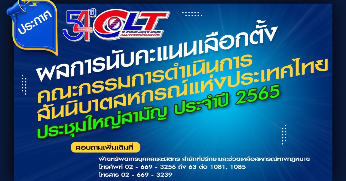 รายงานผลการเลือกตั้งคณะกรรมการสันนิบาตสหกรณ์แห่งประเทศไทย