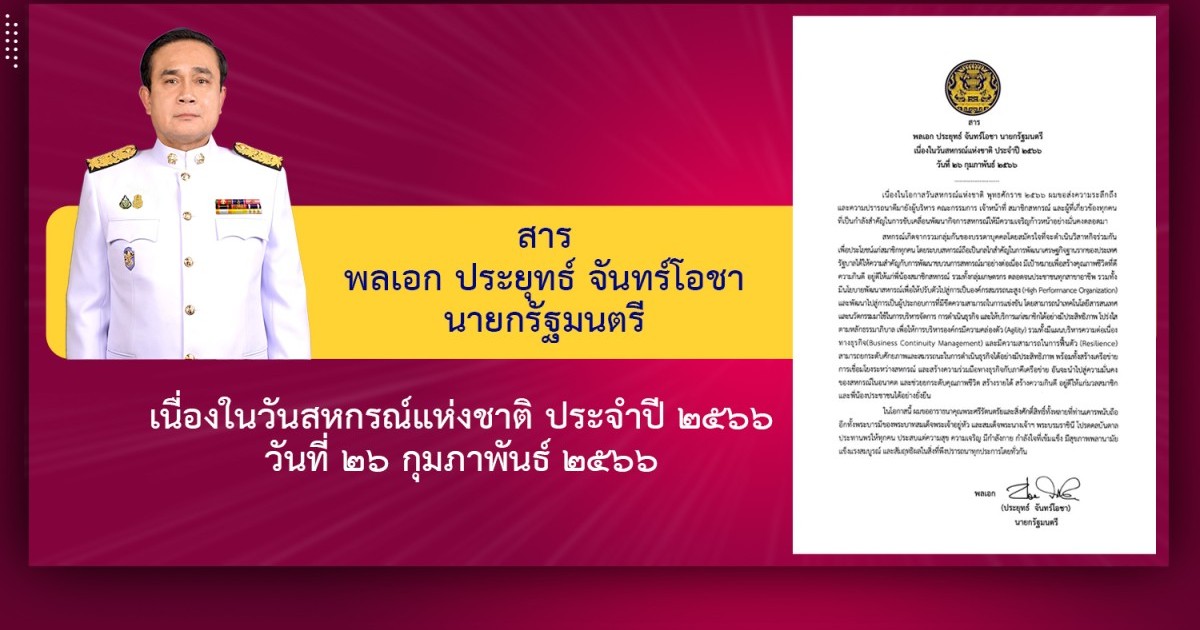 สารนายกรัฐมนตรี เนื่องในวันสหกรณ์แห่งชาติ ประจำปี 2566