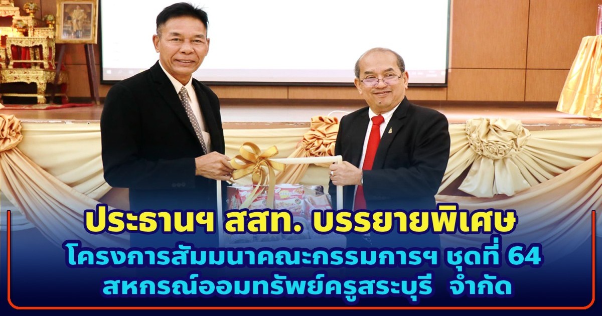 ประธานฯ สสท. บรรยายพิเศษ โครงการสัมมนาคณะกรรมการฯ ชุดที่ 64 สหกรณ์ออมทรัพย์ครูสระบุรี จำกัด