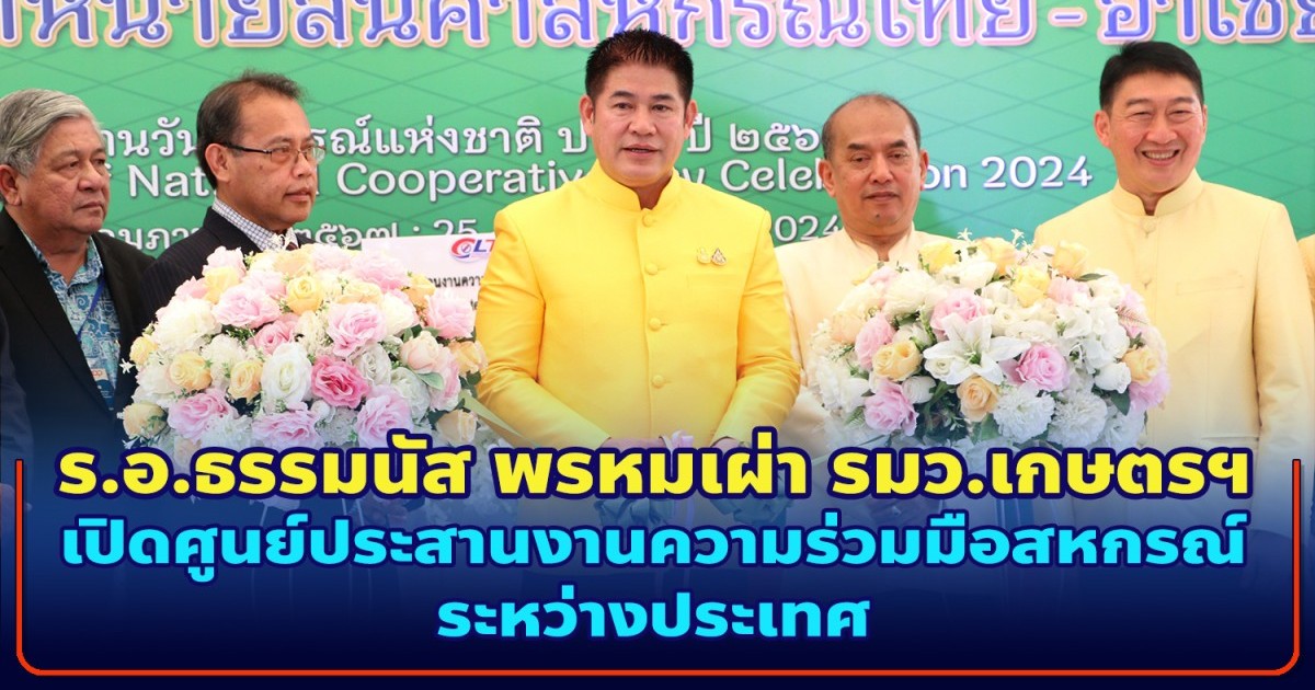 วันที่ 26 กุมภาพันธ์ 2567 ร้อยเอกธรรมนัส พรหมเผ่า รัฐมนตรีว่าการกระทรวงเกษตรและสหกรณ์ เป็นประธานพิธีเปิด “ศูนย์ประสานงานความร่วมมือสหกรณ์ระหว่างประเทศ” CLT - Coop International Cooperation Center ณ สันนิบาตสหกรณ์แห่งประเทศไทย (สสท.) โดยมีนายปัณฐวิชญ์ มุ่งสมัครศรีกุล ผู้อำนวยการ สันนิบาตสหกรณ์ฯ กล่าวรายงาน พร้อมด้วย นายปรเมศวร์ อินทรชุมนุม ประธานฯ และคณะกรรมการดำเนินการ สันนิบาตสหกรณ์ฯ ร่วมด้วย อธิบดีกรมส่งเสริมสหกรณ์ อธิบดีกรมตรวจบัญชีสหกรณ์ และผู้แทนจาก คณะกรรมการการค้าและธุรกิจ ICA-AP และ สันนิบาตสหกรณ์แห่งประเทศมาเลเซีย ANGKASA ตลอดจน ผู้แทนจากหน่วยงานสหกรณ์และเจ้าหน้าที่ที่เกี่ยวข้องเข้าร่วมพิธี