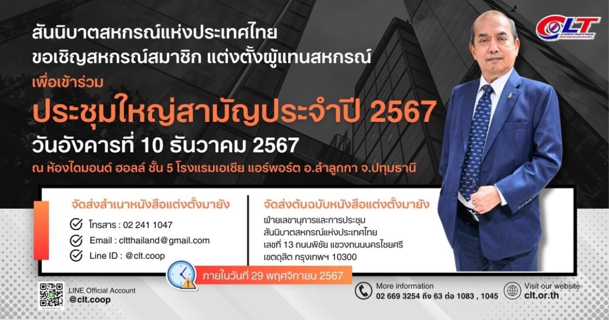 ขอเชิญเข้าร่วมประชุมใหญ่สามัญ ประจำปี 2567