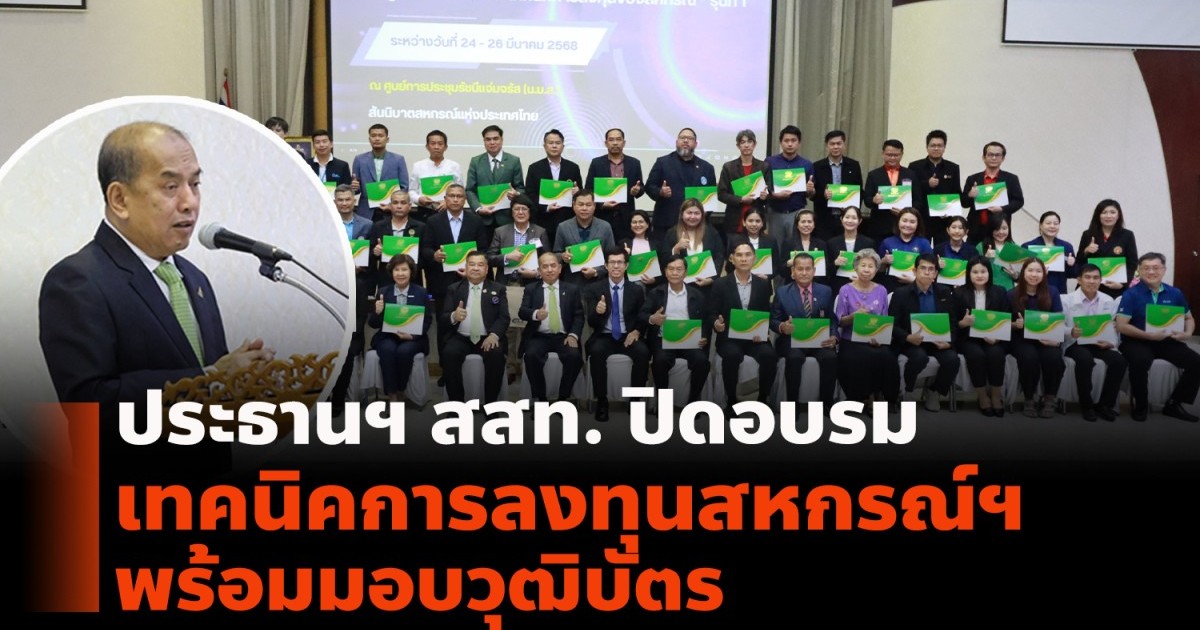 ประธานฯ สสท. ปิดอบรม เทคนิคการลงทุนสหกรณ์ฯ พร้อมมอบวุฒิบัตร