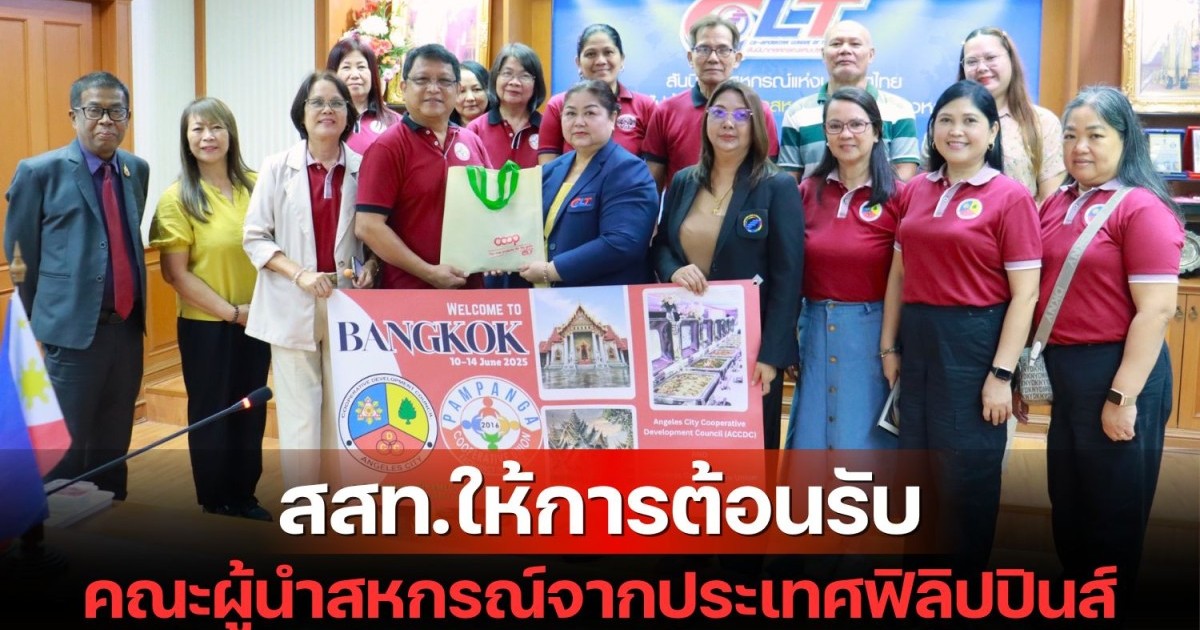 (วันที่ 12 มิถุนายน 2568) เวลา 10.00 น. นางณัชชา จันทร์สนิท รองผู้อำนวยการ สายงานบริหาร รักษาการผู้อำนวยการ และนางสาวอรนุช กันภัย รองผู้อำนวยการ สสท. พร้อมด้วยนายภาณุวัฒน์ แว่นระเว หัวหน้าฝ่ายกิจการระหว่างประเทศและส่งเสริมธุรกิจการค้า ให้การต้อนรับและบรรยายพิเศษเรื่อง ประเทศไทย ความเป็นมาและบทบาทหน้าที่ของ สสท. และขบวนการสหกรณ์ไทย ให้แก่คณะผู้นำสหกรณ์จาก Angeles City Cooperative Development Council (ACCDC) และ Pampanga Cooperative Union (PCU) ประเทศฟิลิปปินส์ จำนวน รวม 15 คน ณ ห้องประชุมไม้สัก สันนิบาตสหกรณ์แห่งประเทศไทย ถนนพิชัย กรุงเทพฯ