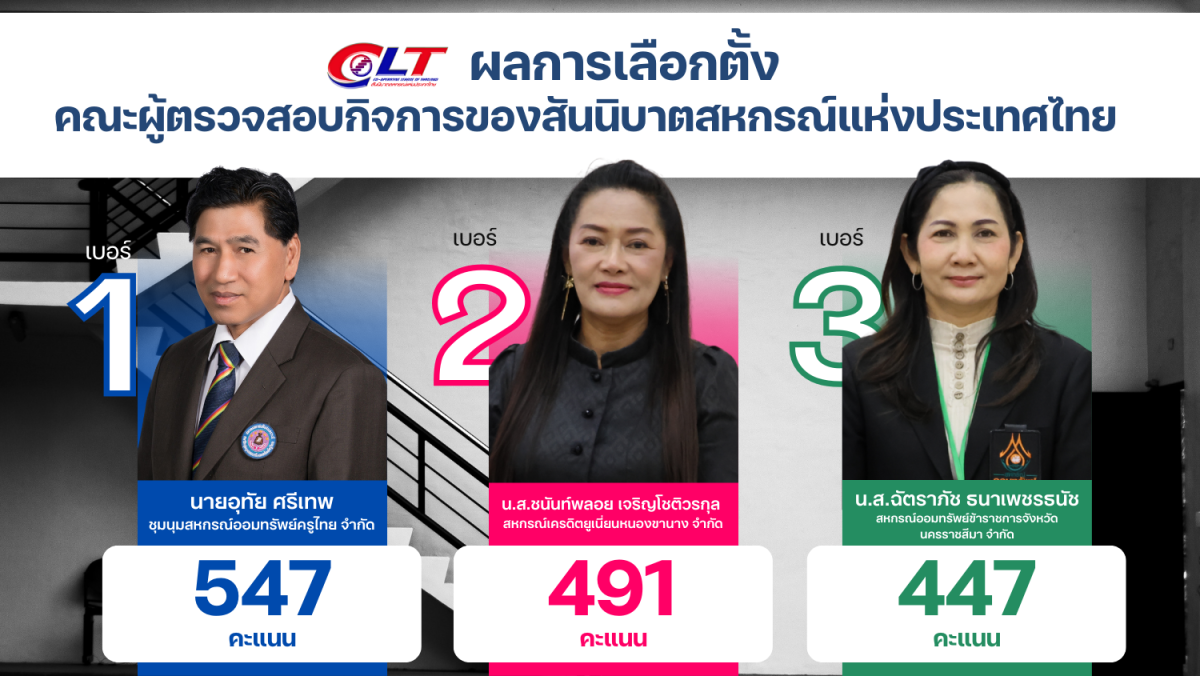 รายงานผลการเลือกตั้งคณะผู้ตรวจสอบกิจการสันนิบาตสหกรณ์แห่งประเทศไทย