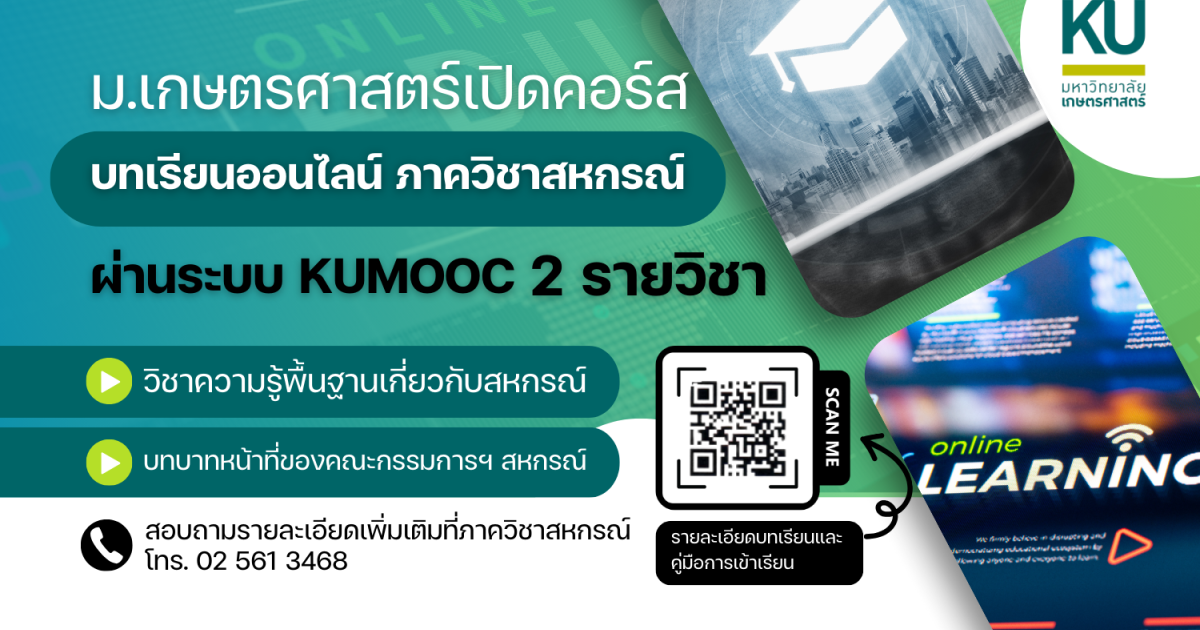มหาวิทยาลัยเกษตรศาสตร์ เปิดคอร์สบทเรียนออนไลน์ ภาควิชาสหกรณ์