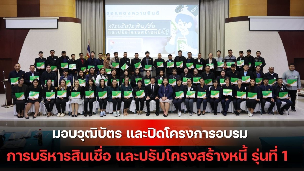 วันที่ 15 มกราคม 2569 - นางณัชชา จันทร์สนิท รองผู้อำนวยการ รักษาการผู้อำนวยการ สันนิบาตสหกรณ์แห่งประเทศไทย (สสท.) เป็นประธานในพิธีปิดโครงการฝึกอบรมบุคลากรสหกรณ์ทุกประเภท หลักสูตร “การบริหารสินเชื่อ และปรับโครงสร้างหนี้” รุ่นที่ 1 พร้อมมอบวุฒิบัตรแก่ผู้ผ่านการฝึกอบรม ณ ศูนย์การประชุมรัชนีแจ่มจรัส (น.ม.ส.) สันนิบาตสหกรณ์แห่งประเทศไทย ถนนพิชัย กรุงเทพฯ