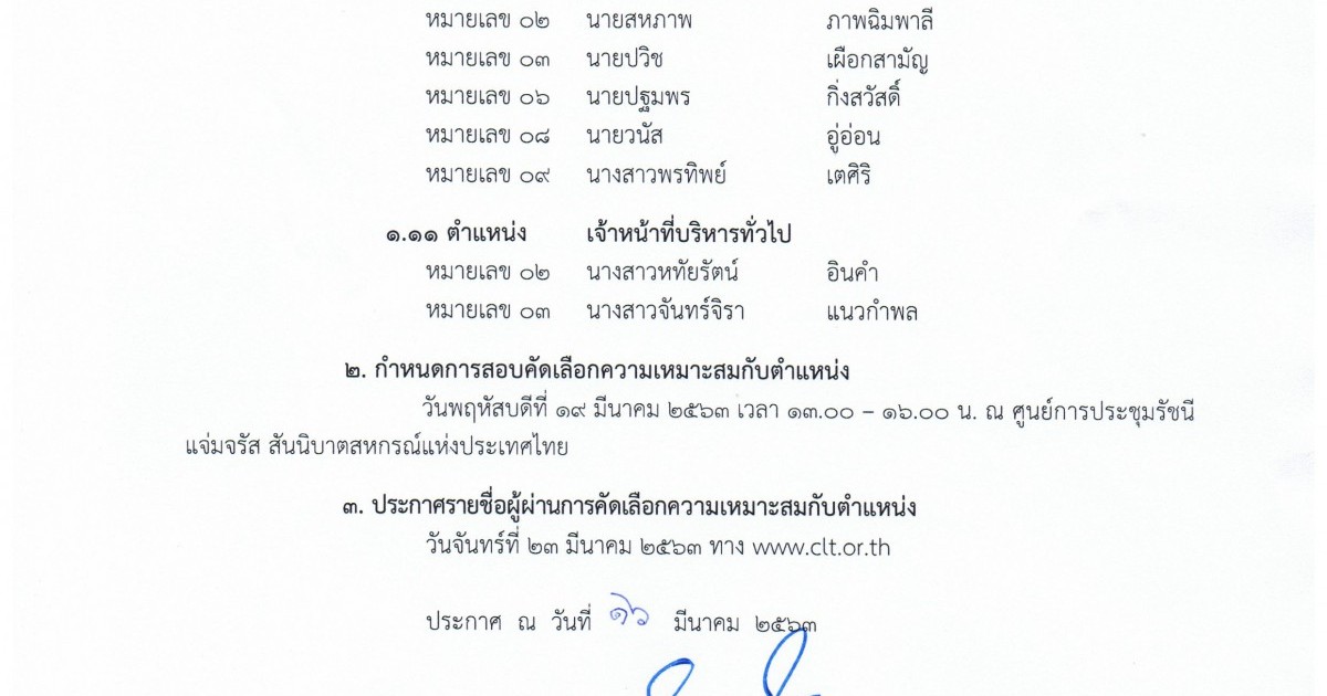 ประกาศ รายชื่อผู้ผ่านการสอบความรู้ความสามารถทั่วไป ความรู้ความสามารถเฉพาะตำแหน่ง และมีสิทธิสอบความเหมาะสมกับตำแหน่ง