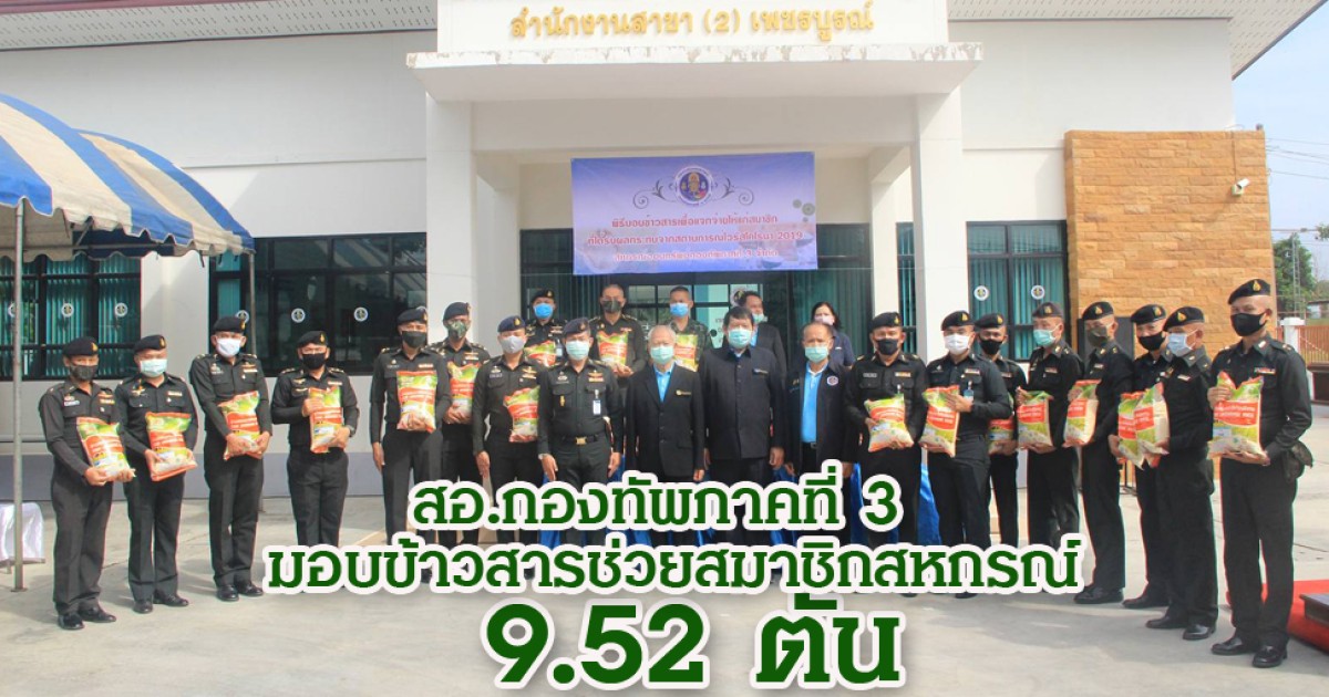 รองประธานกรรมการสหกรณ์ออมทรัพย์กองทัพภาคที่ 3 จำกัด กล่าวอีกว่า สำหรับในครั้งนี้ สหกรณ์ออมทรัพย์กองทัพภาคที่ 3 จำกัด ได้ส่งมอบข้าวสารช่วยเหลือสมาชิกที่ได้รับผลกระทบจากสถานการณ์การแพร่ระบาดของเชื้อไวรัสโคโรนา 2019 ในเขตพื้นที่จังหวัดเพชรบูรณ์ โดยส่งมอบข้าวสารให้แก่ผู้แทนหน่วยรับไปดำเนินการแจกจ่ายให้แก่สมาชิกในสังกัด รวม 19 หน่วย จำนวน 952 คน ซึ่งข้าวสารที่นำมาใช้ในโครงการฯ ดังกล่าว สหกรณ์ฯ ได้ประสานงานสั่งซื้อข้าวสารหอมมะลิแท้จากสหกรณ์การเกษตรเพชรบูรณ์ จำกัด มอบให้แก่สมาชิกคนละ 10 กิโลกรัม ต่อไป