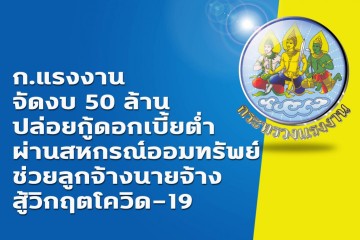ก.แรงงาน จัดงบ 50 ล้าน ปล่อยกู้ดอกเบี้ยต่ำผ่านสหกรณ์ออมทรัพย์ ช่วยลูกจ้างนายจ้างสู้วิกฤตโควิด-1...