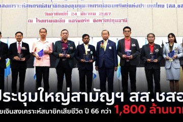 ประชุมใหญ่สามัญ ฯ สส.ชสอ. จ่ายเงินสงเคราะห์สมาชิกเสียชีวิต ปี 66 กว่า 1800 ล้านบาท พร้อม มอบโล่ศูนย์ประสานงานดีเด่น ...