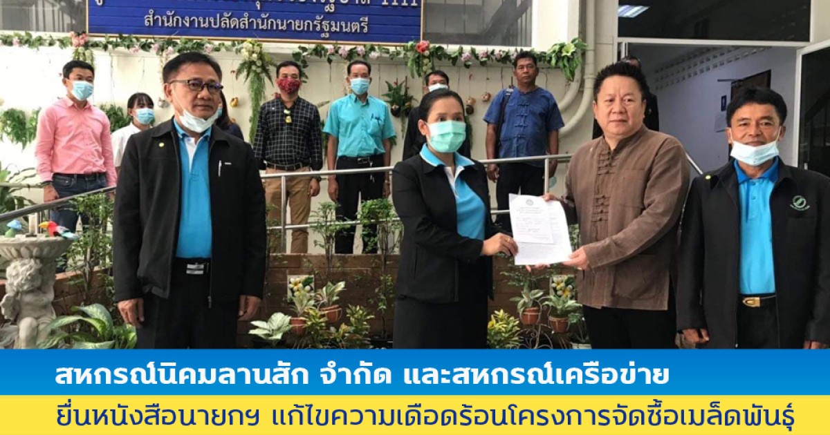 สหกรณ์นิคมลานสัก จำกัด และสหกรณ์เครือข่าย ยื่นหนังสือนายกฯ แก้ไขความเดือดร้อนโครงการจัดซื้อเมล็ดพันธุ์