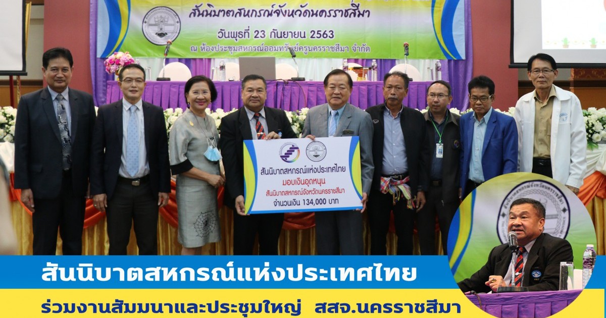 (23 กันยายน 2563) สันนิบาตสหกรณ์แห่งประเทศไทย (สสท.) โดยนางสุนารี มีทรัพย์ กรรมการดำเนินการ สสท. พร้อมด้วย ดร.ปัณฐวิชญ์ มุ่งสมัครศรีกุล ผู้อำนวยการฯ และเจ้าหน้าที่ฝ่ายงานสหกรณ์สัมพันธ์ สายงานส่งเสริม ร่วมงานโครงการสัมมนาเสริมสร้างระบบการบริหารจัดการที่มีประสิทธิภาพ และการประชุมใหญ่สามัญประจำปี 2562 ของสันนิบาตสหกรณ์จังหวัดนครราชสีมา ณ ห้องประชุมสำนักงานสหกรณ์ออมทรัพย์ครูจังหวัดนครราชสีมา จำกัด อำเภอเมือง จังหวัดนครราชสีมา และได้มอบเงินสนับสนุนให้แก่นายทอง วิริยะจารุ ประธานคณะกรรมการสันนิบาตสหกรณ์จังหวัดนครราชสีมาเป็นจำนวนเงิน 134,000 บาท