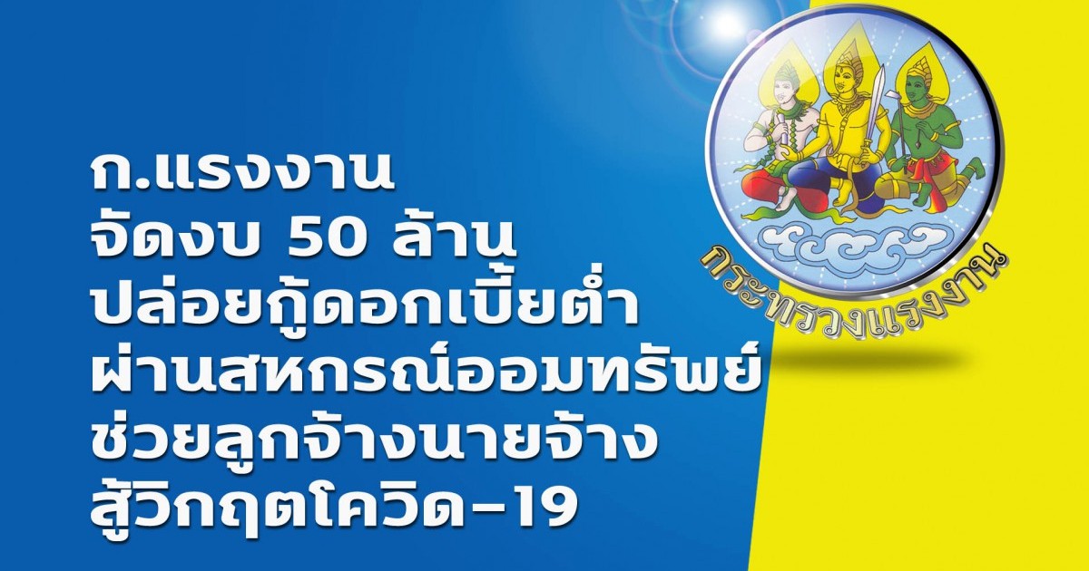 ก.แรงงาน จัดงบ 50 ล้าน ปล่อยกู้ดอกเบี้ยต่ำผ่านสหกรณ์ออมทรัพย์ ช่วยลูกจ้างนายจ้างสู้วิกฤตโควิด-19