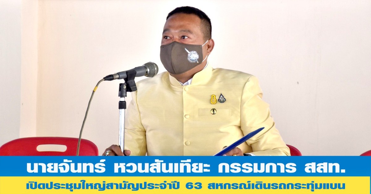 นายจันทร์ หวนสันเทียะ กรรมการดำเนินการ สสท. เปิดประชุมใหญ่สามัญประจำปี 63 สหกรณ์เดินรถกระทุ่มแบน จำกัด