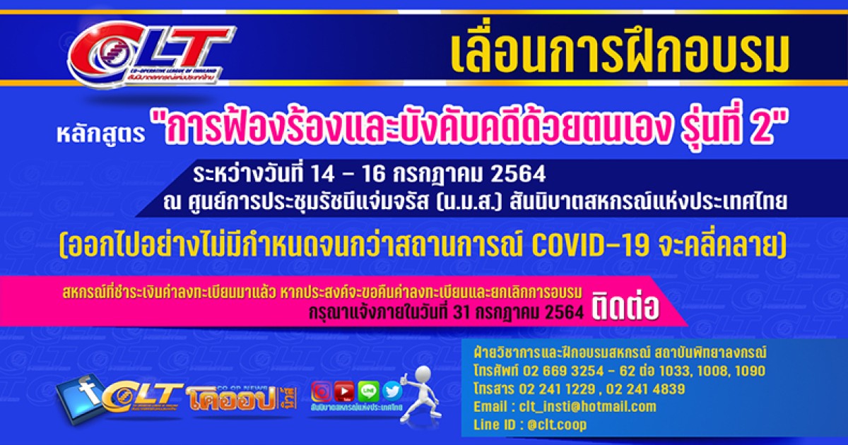 แจ้ง เลื่อน การฝึกอบรม เดือนกรกฎาคม 2564