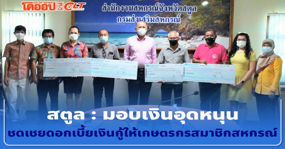 สตูล : มอบเงินอุดหนุนชดเชยดอกเบี้ยเงินกู้ให้เกษตรกรสมาชิกสหกรณ์