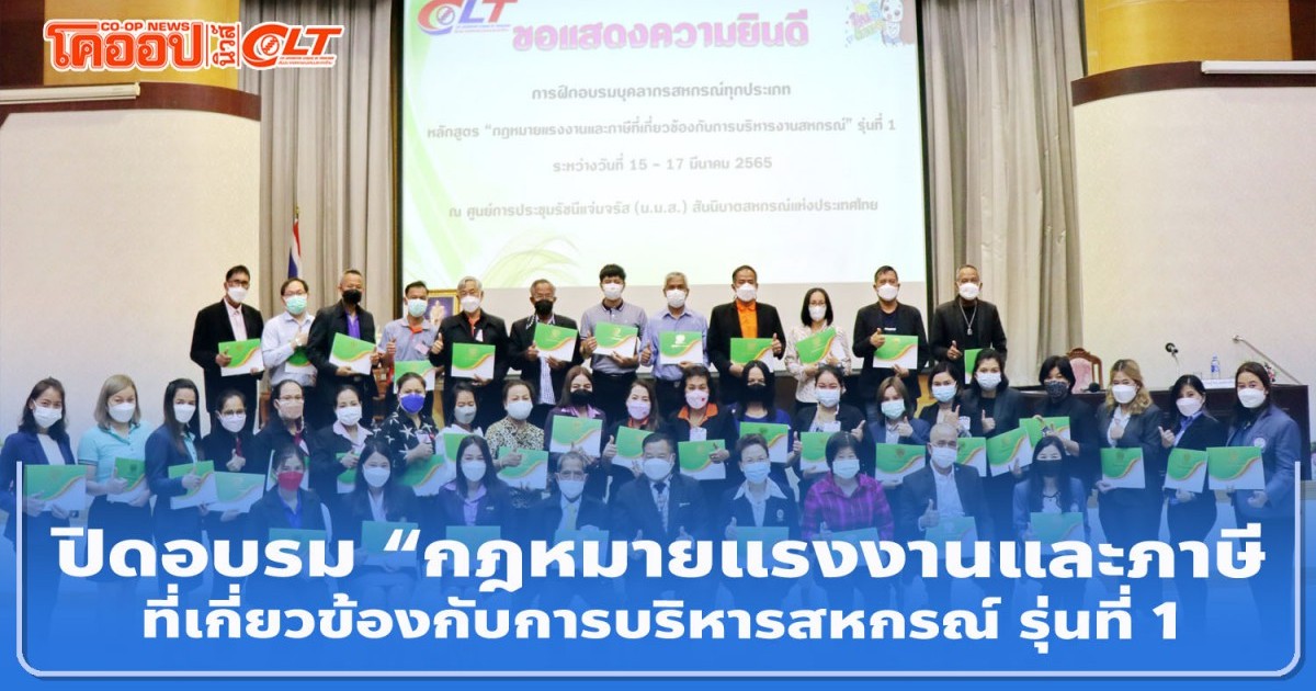 ปิดอบรม หลักสูตร กฎหมายแรงงานและภาษีที่เกี่ยวข้องกับการบริหารสหกรณ์ รุ่นที่ 1