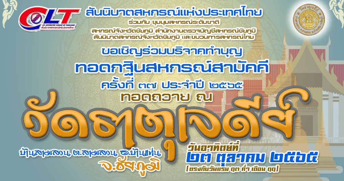 ขอเชิญร่วมทำบุญกฐินสหกรณ์สามัคคี ครั้งที่ 37 ประจำปี 2565