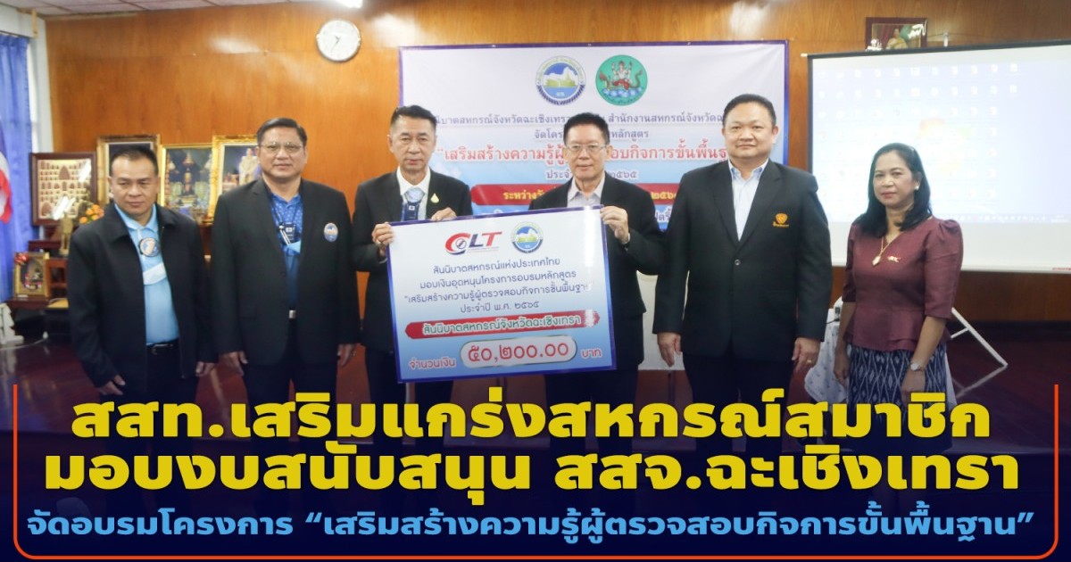สสท.เสริมแกร่งสหกรณ์สมาชิก มอบงบสนับสนุน สสจ.ฉะเชิงเทรา จัดอบรมโครงการ “เสริมสร้างความรู้ผู้ตรวจสอบกิจการขั้นพื้นฐาน”
