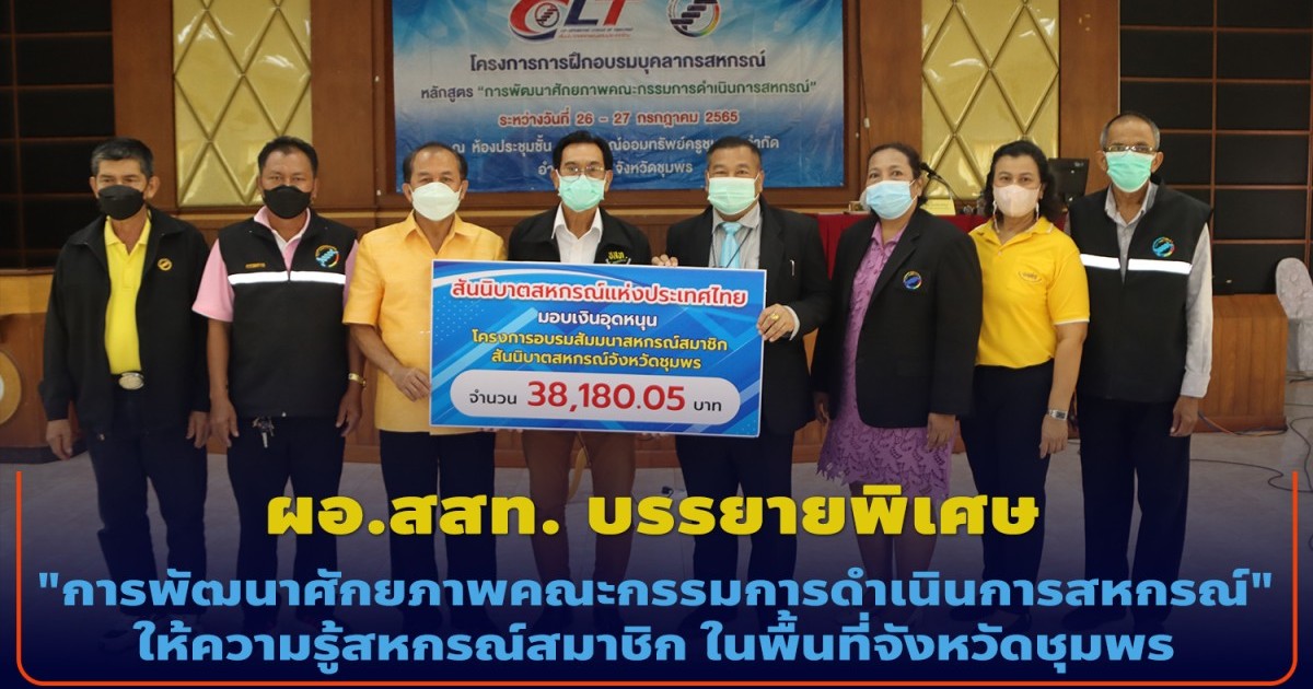 ผอ.สสท. บรรยายพิเศษ "การพัฒนาศักยภาพคณะกรรมการดำเนินการสหกรณ์" ให้ความรู้สหกรณ์สมาชิก ในพื้นที่จังหวัดชุมพร