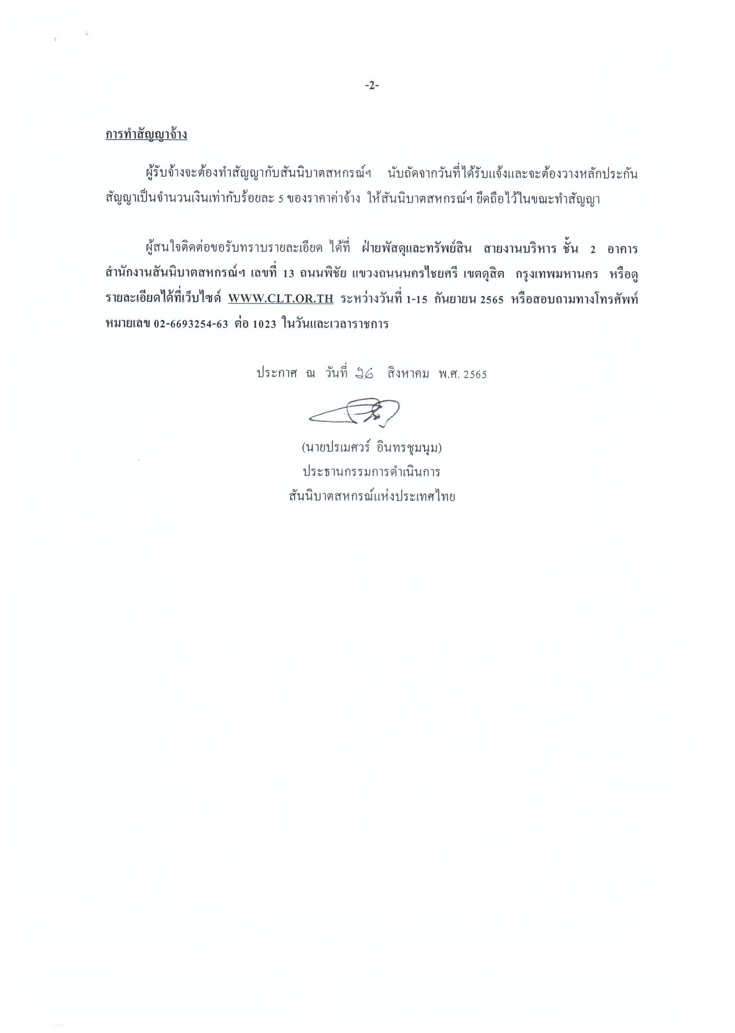 ประกาศ สอบราคาจัดจ้างพนักงานบริษัททำความสะอาดและจัดเตรียมห้องพัก