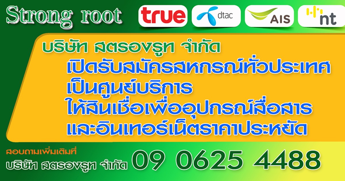 บริษัท สตรองรูท จำกัด เปิดรับสมัครสหกรณ์ทั่วประเทศเป็นศูนย์บริการให้สินเชื่อเพื่ออุปกรณ์สื่อสารและอินเทอร์เน็ตราคาประหยัด