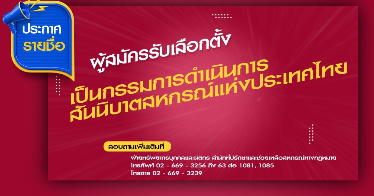 ประกาศ รายชื่อผู้สมัครรับเลือกตั้ง เป็นกรรมการดำเนินการสันนิบาตสหกรณ์แห่งประเทศไทย
