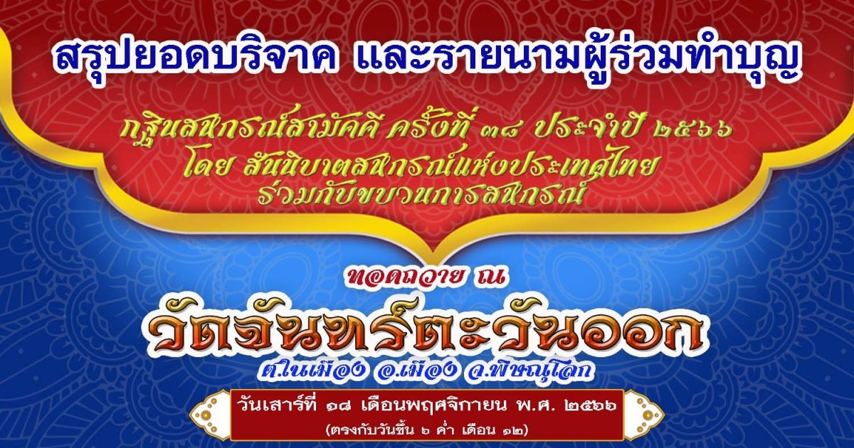 | รายนามผู้ร่วมทำบุญทอดกฐินสหกรณ์สามัคคี ครั้งที่ 38 ประจำปี 2566 | ||