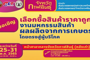 จังหวัดกาฬสินธุ์ จับมือสันนิบาตสหกรณ์จังหวัดกาฬสินธุ์ จัดงานมหกรรมสินค้าผลผลิตจากสมาชิกสหกรณ์ทุกประเภทโดยตรงสู่ผู้บริโภค ...