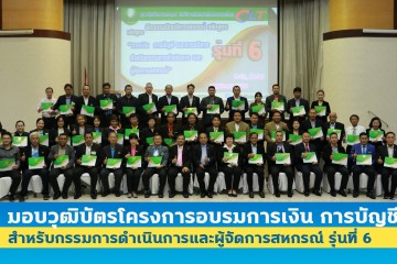 มอบวุฒิบัตรผู้ผ่านการอบรมหลักสูตร การเงิน การบัญชี รุ่น 6 ดร.ปัณฐวิชญ์ มุ่งสมัครศรีกุล ผู้อำนวยการสันนิบาตสหกรณ์แห่งประเทศไทย ...